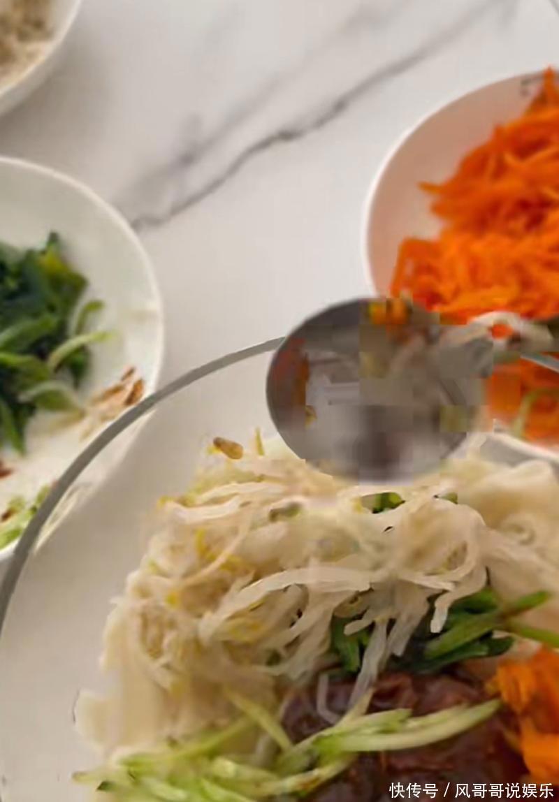 高云翔在宽面中加入了黄豆酱、豆芽、胡萝卜丝等配料,令人觉得色彩鲜明、香味诱人。还亲自用筷子和碗为父亲伴奏,并演唱了生日歌。