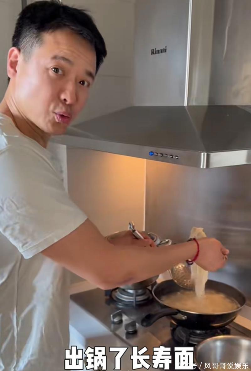 高云翔穿着白色短袖,上阵时没有化妆,他在家亲自为父亲准备了寿面庆祝生日。